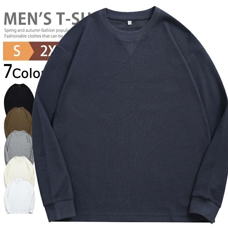 tシャツ メンズ ワッフル編み 長袖 ロンT カットソー クルーネック ティーシャツ ロングTシャツ ワッフルtシャツ トップス 無地 薄手 長袖tシャツ スポーツ ルームウェア カジュア ティシャツ