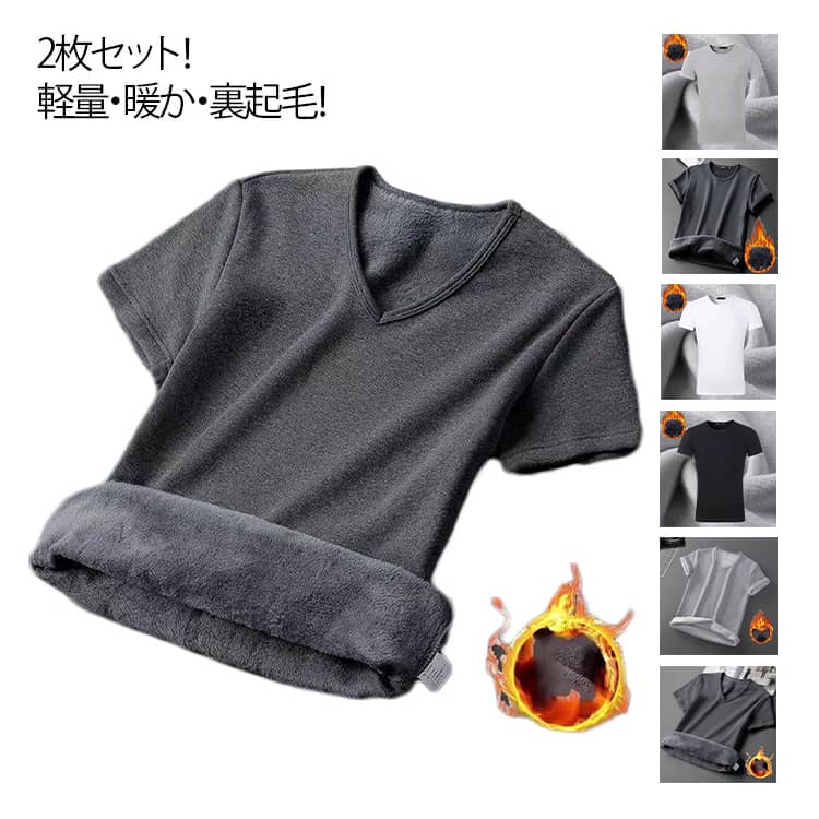 裏起毛 あったか 半袖 クルーネック tシャツ 2枚セット アンダーTシャツ アンダーシャツ インナー 防寒 無地 メンズ レディース インナーシャツ Vネックカジュアル ゴルフ ゴルフウェ Uネック