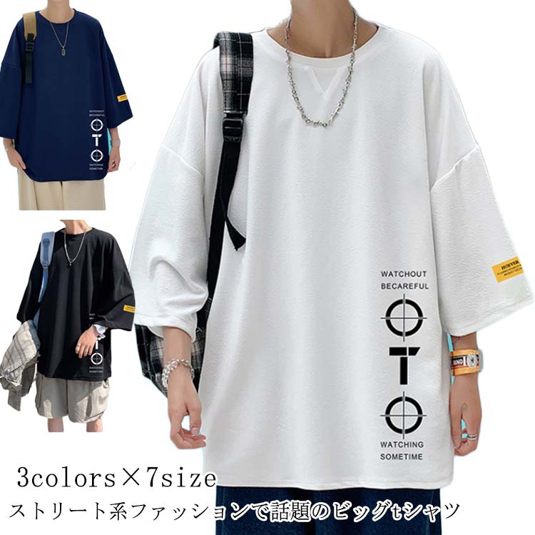 メンズ 七分袖 大きいサイズ ゆったり オーバーサイズ tシャツ ティーシャツ ビッグTシャツ カジュアル 七分袖Tシャツ ビッグシルエット 夏 アイスシルク ゆるTシャツ 7分袖 カットソー