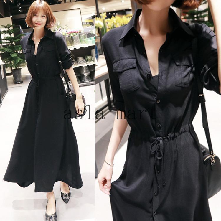 ワンピース 夏 レディース きれいめ 40代 春 シャツワンピース 秋 冬 ロング カジュアル 黒 黒ワンピ 30代 50代 長袖 上品 20代