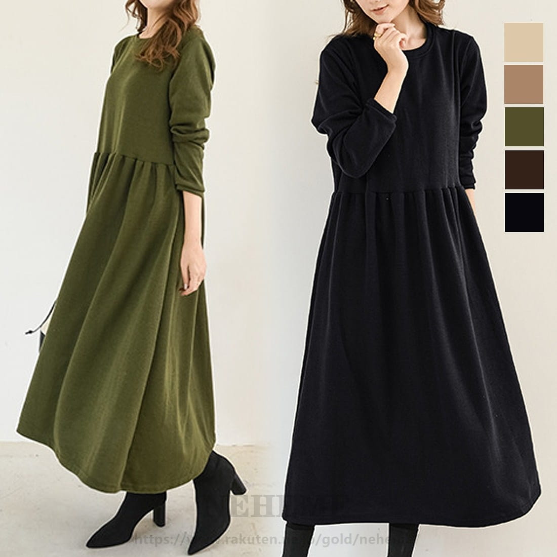 冬に使える暖 かロング ワンピース肉厚生地大人上品美シルエット上品フレアワンピース カジュアルワンピース大人カジュ