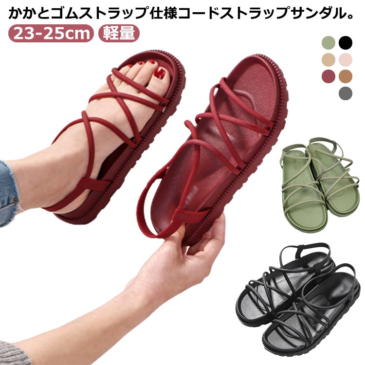 脱ぎやすいコードストラップサンダルゴムストラップ仕様ストラップサンダル編み歩きやすい疲れない厚底