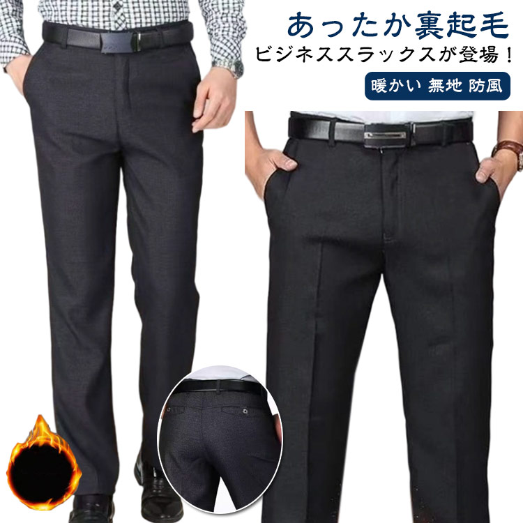 スラックス メンズ 裏起毛 ビジネスパンツ 秋 冬 暖パン あったか 防寒 厚手 裏ボア 洗える ビジネス 通勤 フォーマル 仕事着 紳士 長ズボン 暖かい 防風 スーツパンツ ロングパン 無地
