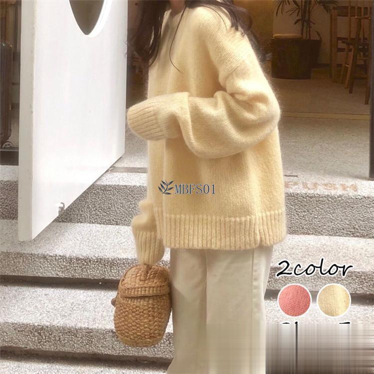 ニット セーター レディース トップス 秋 長袖 ピンク 黄色 ライトニット ゆったり ファッション 通勤 普段着 カジュアル