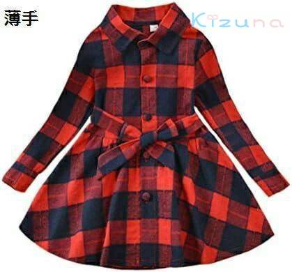 ワンピース キッズ 長袖 赤 チェック レトロ ベルト付き 子供服 女の子 秋服 おしゃれシャツ ブラウス 春