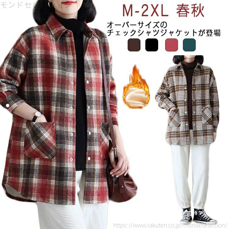 シャツジャケット 裏起毛 ライトジャケット 体型カバー アウター チェック柄 暖かい 大きサイズ レディース 厚手