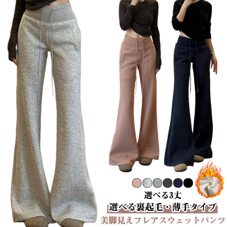 美尻&美脚 スウェット ゆったり スポーツウェア フレアパンツ 秋冬 ワイドパンツ 選べる裏起毛・薄手タイプ! 防寒 ボトムス