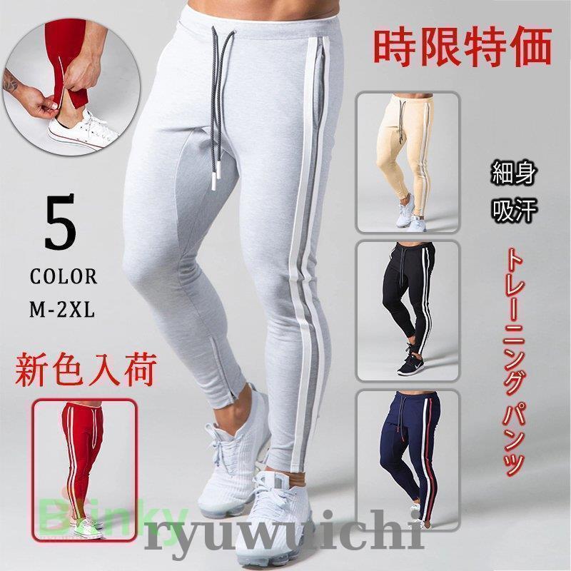 メンズ ジョガーパンツ トレーニング パンツ ジャージパンツ サイドライン 細身 ジョガー ストレッチ 吸汗 コンプレッションタイツ スリム