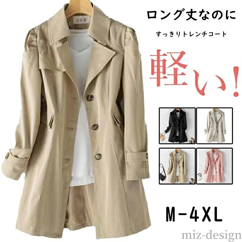 コート ボタン レディース トレンチコート フードなし ミドル丈 秋 春 スプリングコート チェスターコート