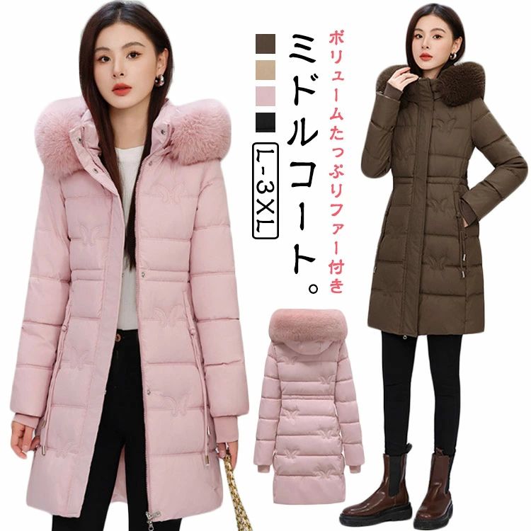 ダウンコート レディース ロング ミドル丈 アウター 中綿 きれいめ 20代 30 ,40 50代 秋 冬 上品 防寒 通勤 ファー フード 体型カバー お洒落