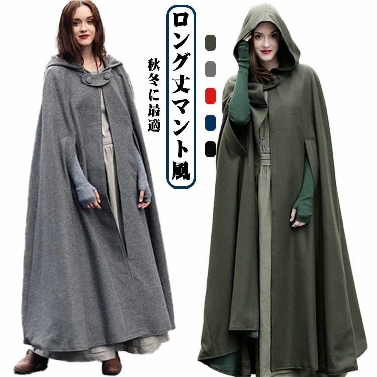 レディース 秋冬 防寒 マント ロングコート フード付き ポンチョ