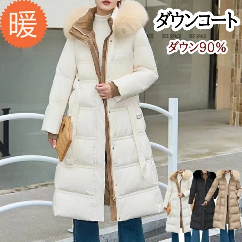 ダウンコートレディース ロングダウンコート ダウンジャケット ロングダウン アウターロングコート フォックスファー レディース ダウン90% 冬物 大きいサイズ 上品 ロング丈 暖かい 黒通勤 防寒