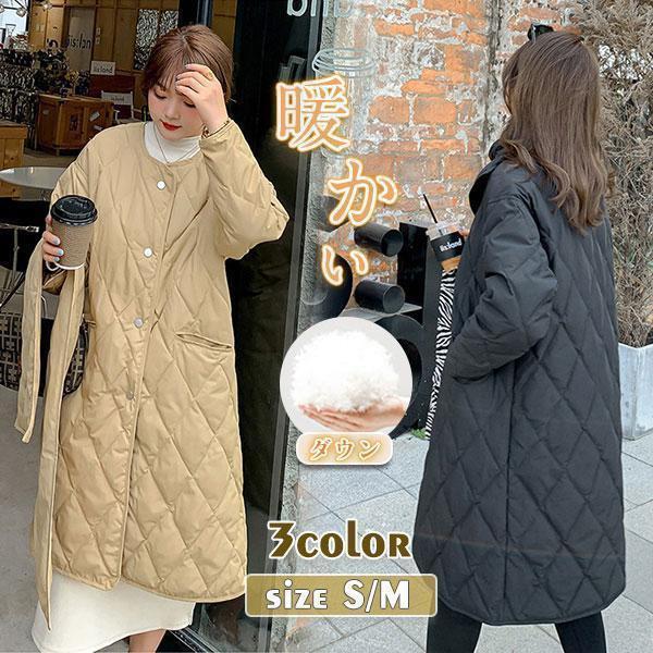 ダウンジャケット レディース 超軽量 ロング ダウンコート 襟なし ネック ジャケット コート 秋冬 カジュアル