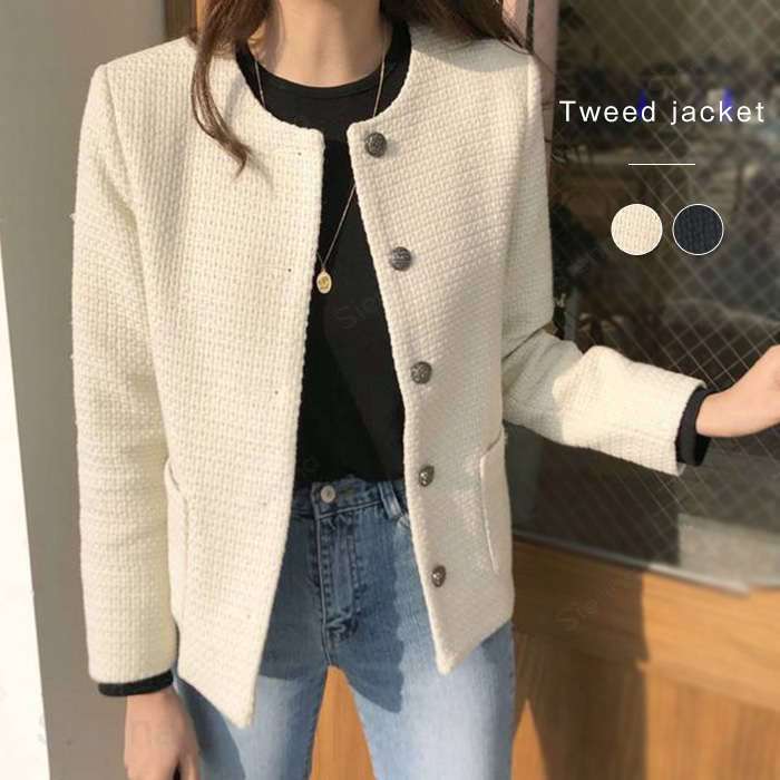ジャケット ツイード レディース アウター ノーカラージャケット ツイードジャケット ノーカラー スーツ セレモニースーツ フォーマルスーツ ママスーツ 長袖 羽織 きれいめ 春 秋 冬 大きいサイズ