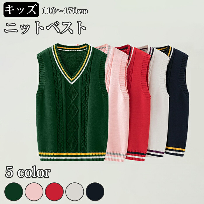 男女兼用 ニットベスト キッズ ジュニア コーデ Vネック トップス ニット フォーマルベスト 重ね着 綿 秋物 冬物 学生 子供服 ラインベスト 制服 学生服 高校 通学 学院風 セータ 中学