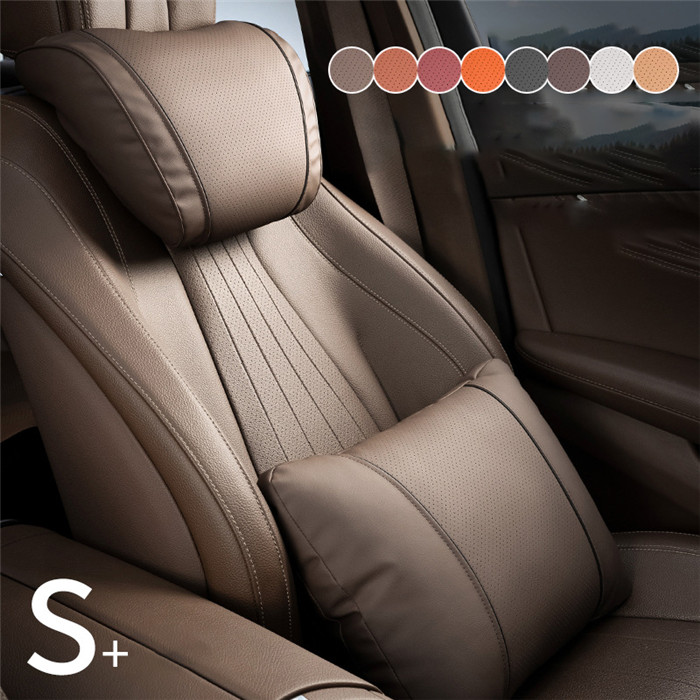ネックパッド 車 ヘッドレスト 首クッション 腰クッション シートクッション ランバーサポート 運転 ネックピロー 後部座席 前席 ナパ レザー 通気 長時間運転 車中泊 綿入り