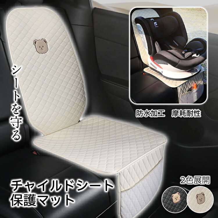 チャイルドシート 保護マット レザー調 ハーフ 車 シートカバー 座席カバー 防水シート カーシート 汚れ防止 子ども 座面 背もたれ ブラック 高級感 滑り止め ポケット ジュニアシート PUレザー