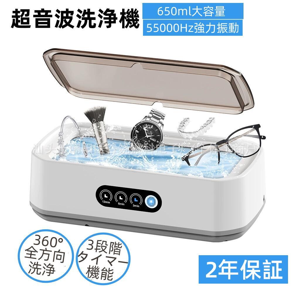 超音波洗浄機 メガネクリーナー 洗浄機 小型超音波洗浄器 650ml大容量55000Hz強力振動 3段階タイマー機能 眼鏡洗浄機 超音波クリーナー 軽量 小型家用 腕時計バンド 指輪 貴金属 化粧道具