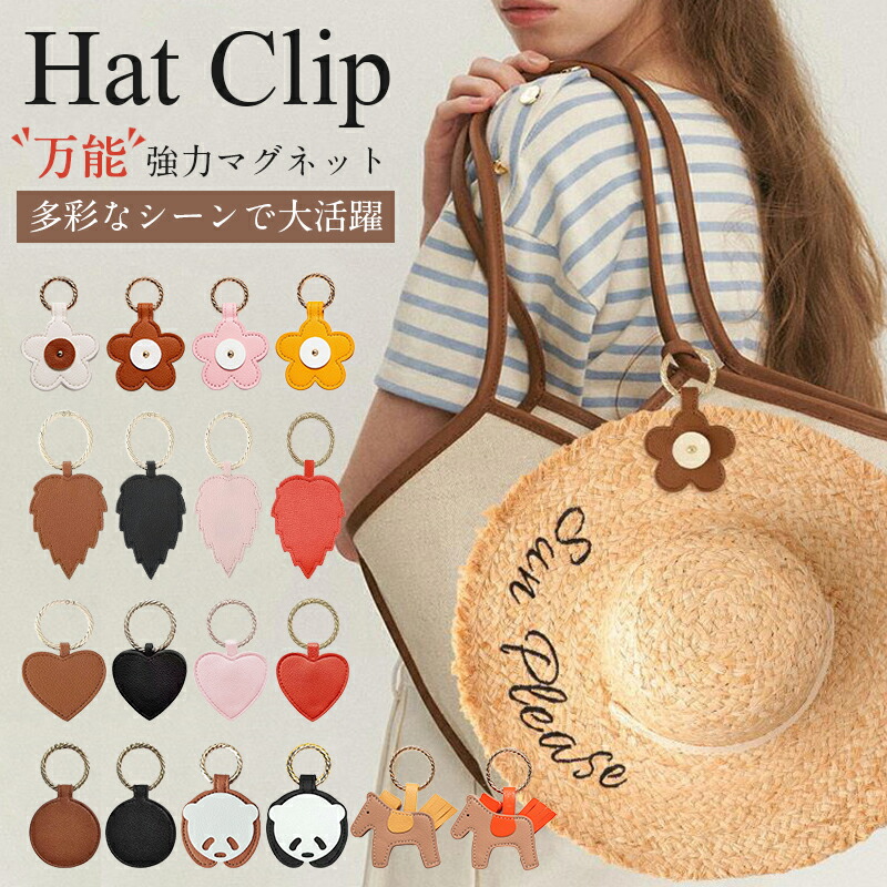 ハットクリップ 帽子クリップ 万能強力マグネット バッグチャーム キャップクリップ 帽子収納 キーホルダー 鞄アクセサリー 紛失防止 磁石 レザー パンダ 吊り下げ 帽子フック 眼鏡クリッ 持ち歩き