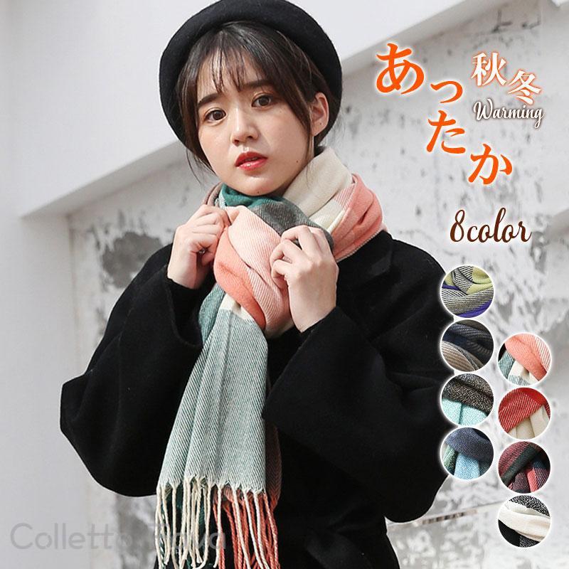 マフラー ストール 大判 レディース 秋冬 チェック 配色 あったか 厚手 暖かい 防寒 ボリューム 肌触り 膝掛け 結婚式 誕生日 肩掛け