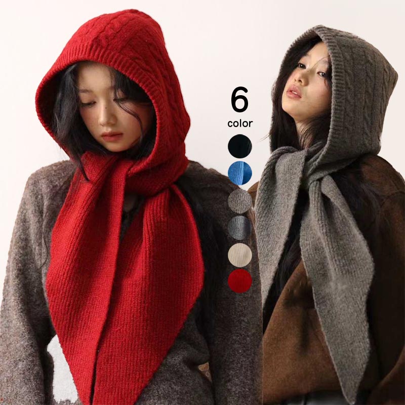 マフラー フード付き 帽子 上品 ニット 耳あて おしゃれ かわいい レディース 秋冬 冬物 防風 小顔見え オフィス 通勤 あったか 通学 一体型 ネックウォーマー 寒さ対策 プレセント フーディー