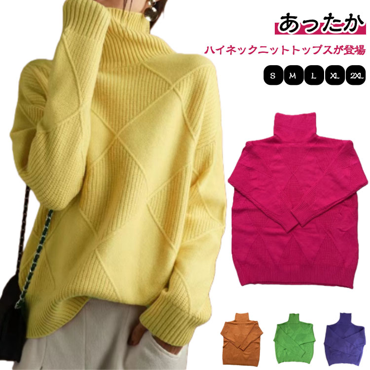 タートルネックセーター レディース 秋冬用 ハイネックニット 長袖 ゆったりサイズ オフィスおしゃれ 無地トップス 体型カバー