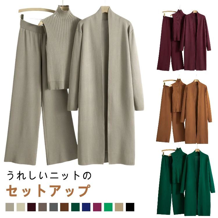 セットアップ 3点セット レディース ベスト ロング ニット フリーサイズ おしゃれ 春 ワイドパンツ