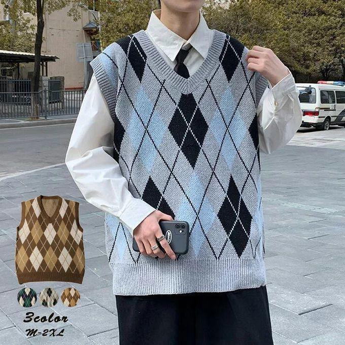 新作 冬 秋 春 カップル 男女兼用 カジュアル ノースリーブ 菱形柄 セーター トップス Vネックベスト レディース メン アウター