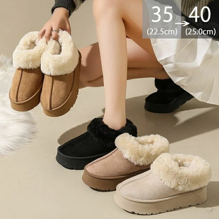 ムートンンブーツ レディース 冬のおしゃれ 防寒シューズ あったかブーツ 秋冬ファッション 厚底スリッポン フェイクファー 歩きやすい 軽量ブーツ フルームシューズ もこもこデザイン 防寒対策 裏起毛