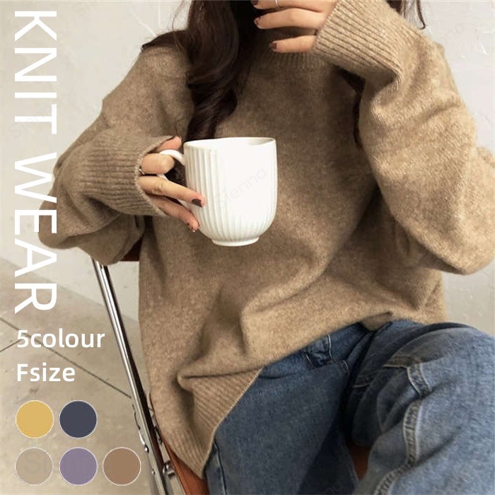 ニットセーター レディース ニット セーター トップス 秋 冬 ニットトップス 長袖 ゆるニット ニットウェア プルオーバー コートインナー 丸首 きれいめ ゆったり 暖かい クルーネック