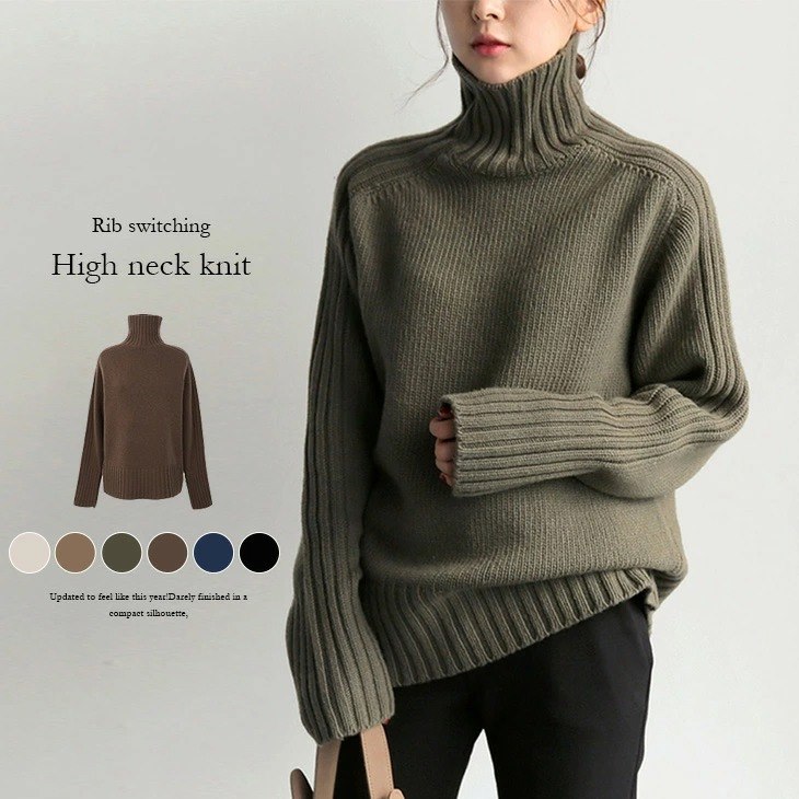 秋冬新作 長袖 レディース トップス タートル ニット 無地 ゆったり サイドライン セーター シ ニットハイネック