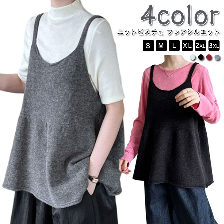 ニットベスト レディース 秋 ニットビスチェ ビスチェ キャミソール ベスト トップス レイヤード タンクトップ ノースリーブ 重ね着 ゆったり 体型カバー フレア オフィス O Aライン