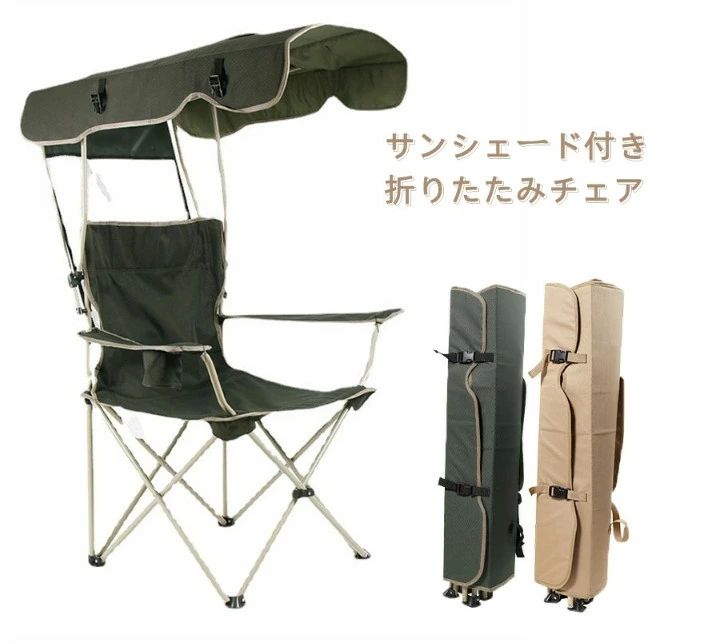 アウトドアチェア レジャーチェア コンパクト サンシェード 日除け 日よけ 傘 日傘 パラソル 屋根付き キャンプ 椅子 イス 持ち運び 折り畳み 折りたたみ 釣り 紫外線対策 収納 運動