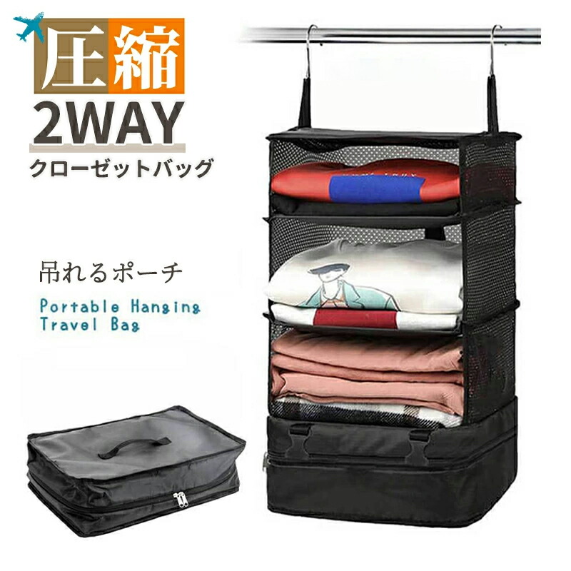 圧縮 トラベルポーチ 吊り下げ 収納バッグ 圧縮クローゼットバッグ 圧縮バッグ クローゼット 4段 バッグインバッグ 旅行用圧縮袋 収納ポーチ 出張 旅行 旅行用衣装 ファスナー収納ボックス