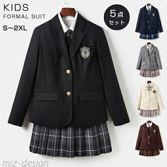 卒業式 スーツ 女の子 小学生 小学校 5点セット フォーマルスーツ 子供スーツ jk制服 高校生 女子高生 XS S M L XL XXL 150 160 ジャケット ブラウス チェックスカ キッズ
