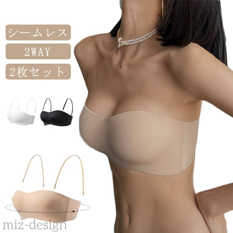 2way ノンワイヤーブラ ずれない ストラップレスブラ 紐なしブラ 育乳ブラ シームレス ブラ 落ちない チューブトップ