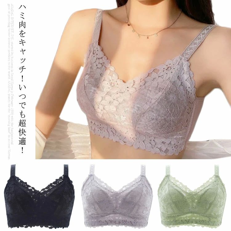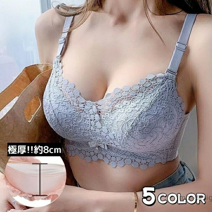 ノンワイヤーブラ 極厚パッド ブラジャー レディース ノンワイヤー 3 4カップ 花柄 レース 補正 下着 インナー 脇高