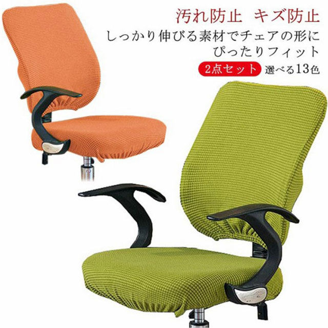 全13色オフィスチェアカバー 座面カバー 背もたれカバー 2点セット 椅子カバー オフィス用 事務椅子 チェアカバー パソコンチェックカバー 伸縮素材 洗濯可能 ストレッチ オールシーズン 着脱簡単