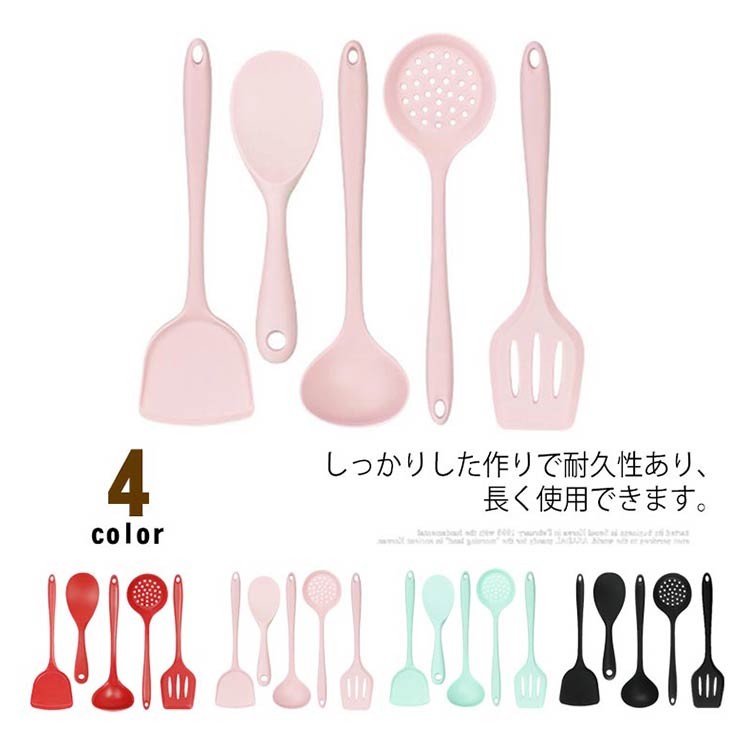 キッチンツール 5点セット シリコン製 キッチンツールセット キッチン用品 安全素材 台所用品 耐熱シリコ 製菓器具 調理 料理 クッキング用品 穴あきスプーン パスタサーバー