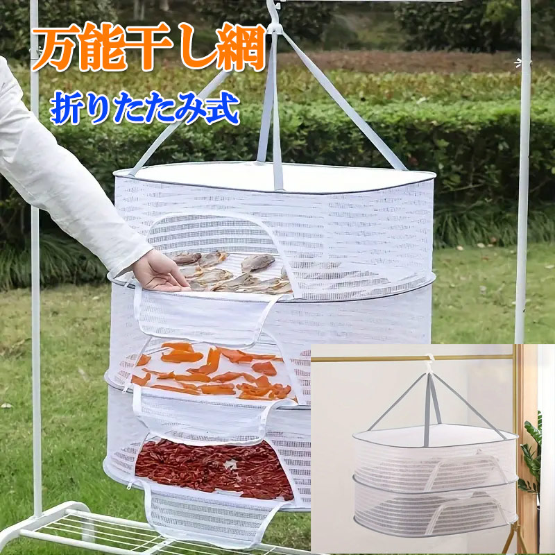 3冠達成】折りたたみ式物干しネット 2段 干し網 物干しネット通気性が良い 360°回転するセルフロック式フック 通気性 防風 昆虫を防ぐ 折り畳み式 野菜干しネット 靴下 スカーフ 干物干しの神器