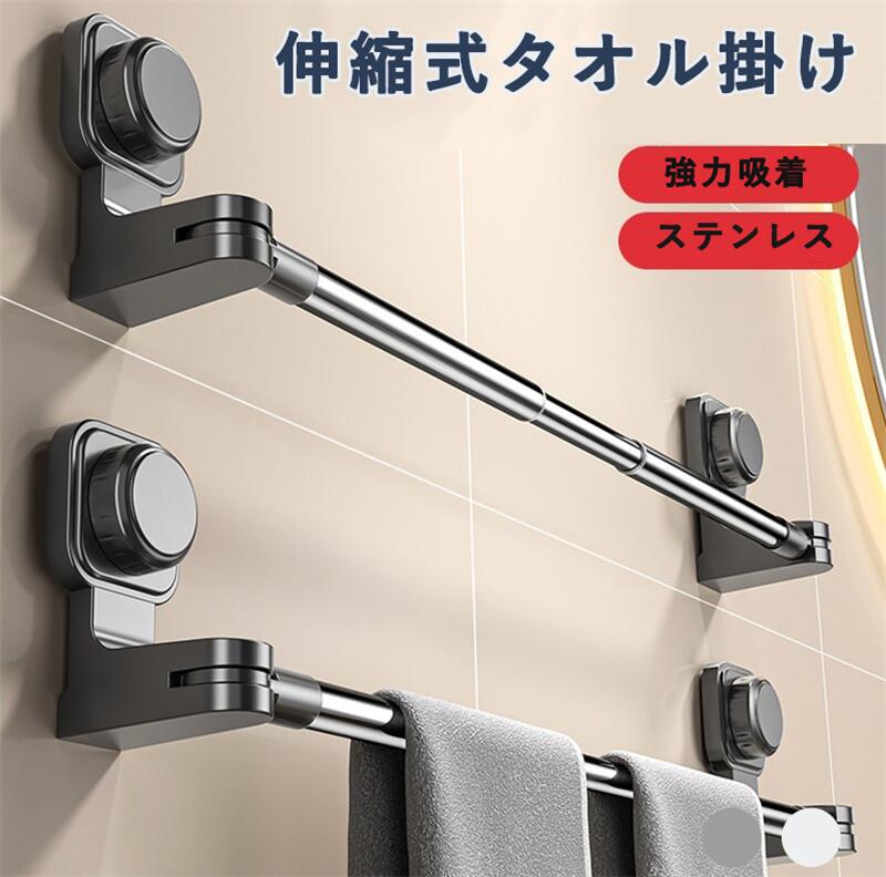 タオル掛け 強力吸盤 伸縮バー コーナー対応 タオルバー タオルハンガー 吸盤式