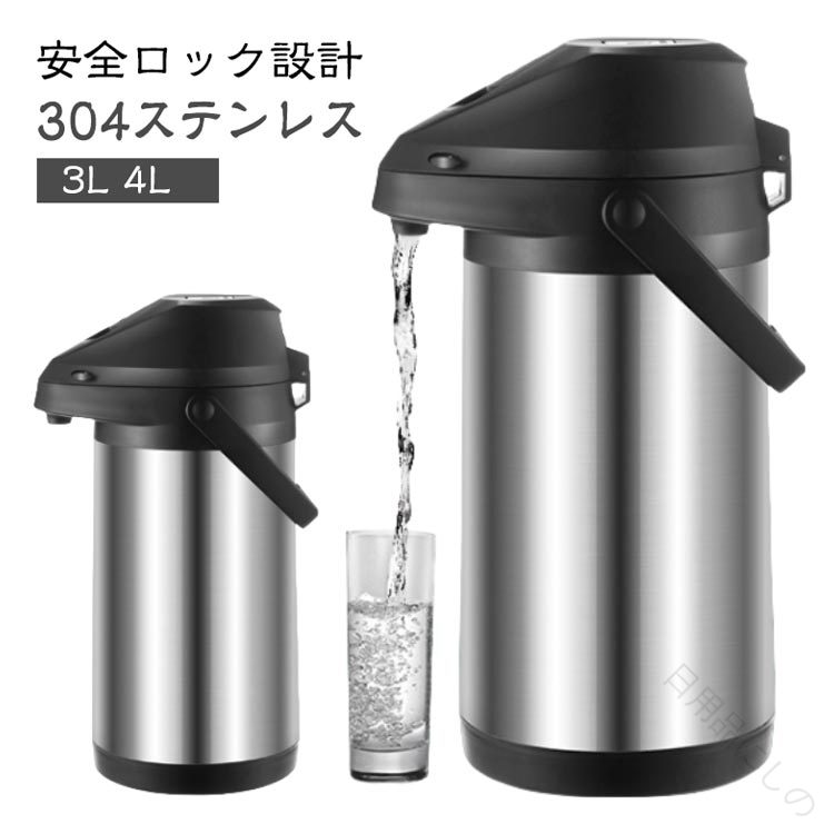 卓上ポット 魔法瓶 3L 4L 大容量 保温ポット エアーポット ステンレスポット 押すだけ簡単 保温保冷 熱湯対応 広口 304ステンレス 安全ロック 手持ち付き 冷めない 持ち運び便利 火傷防止