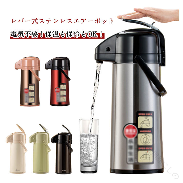 魔法瓶 ポット 保温ポット 1L 1.3L 2L 大容量 持ち運び 卓上ポット 水筒 洗いやすい ワンタッチレバー 広口設計 魔法瓶ポット テーブルポット コーヒー 麦茶 保温 保冷 ティー