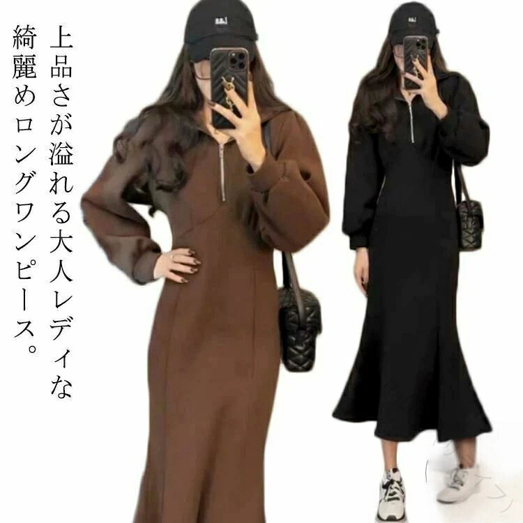 秋冬の着やせ魔法 大人顔のエレガントワンピース 韓国発ハイクオリティ マーメイドラインが脚長効果 特別な日の上品コーデ パーカー付きで機能美