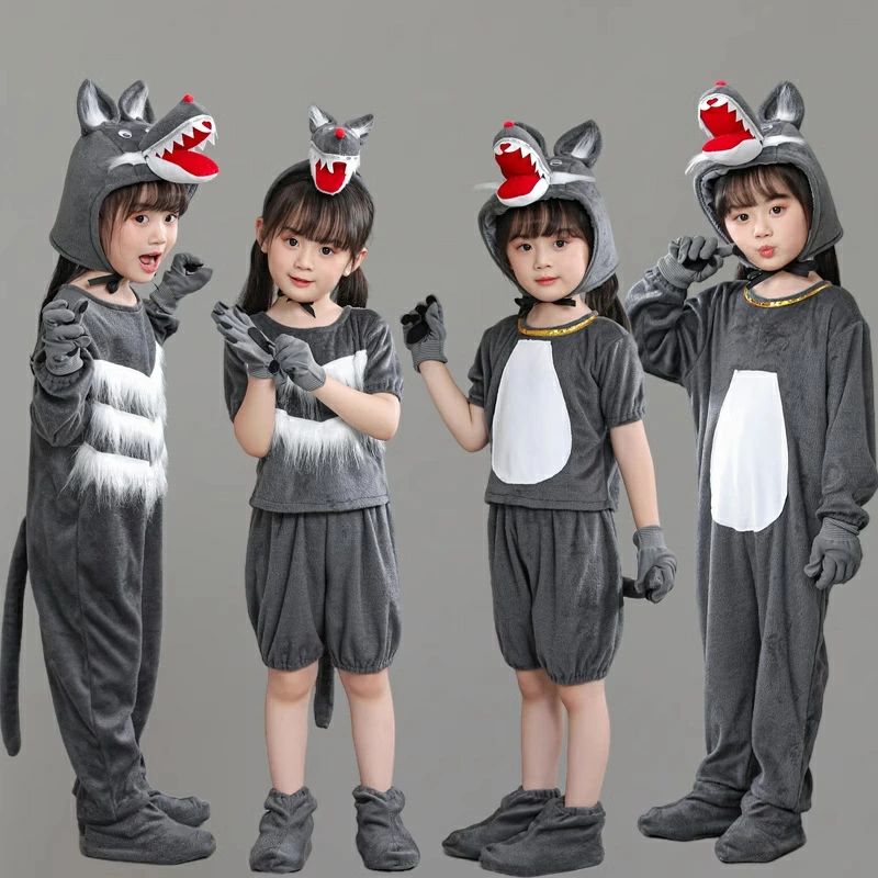 ハロウィン 仮装 子供 ウルフ オオカミ wolf コスチューム 狼 コスプレ 衣装 可愛い グレー 演出服 演劇 短パンセット ワンピースセット 女の子 男の子 半袖 尾付き 変装 長袖