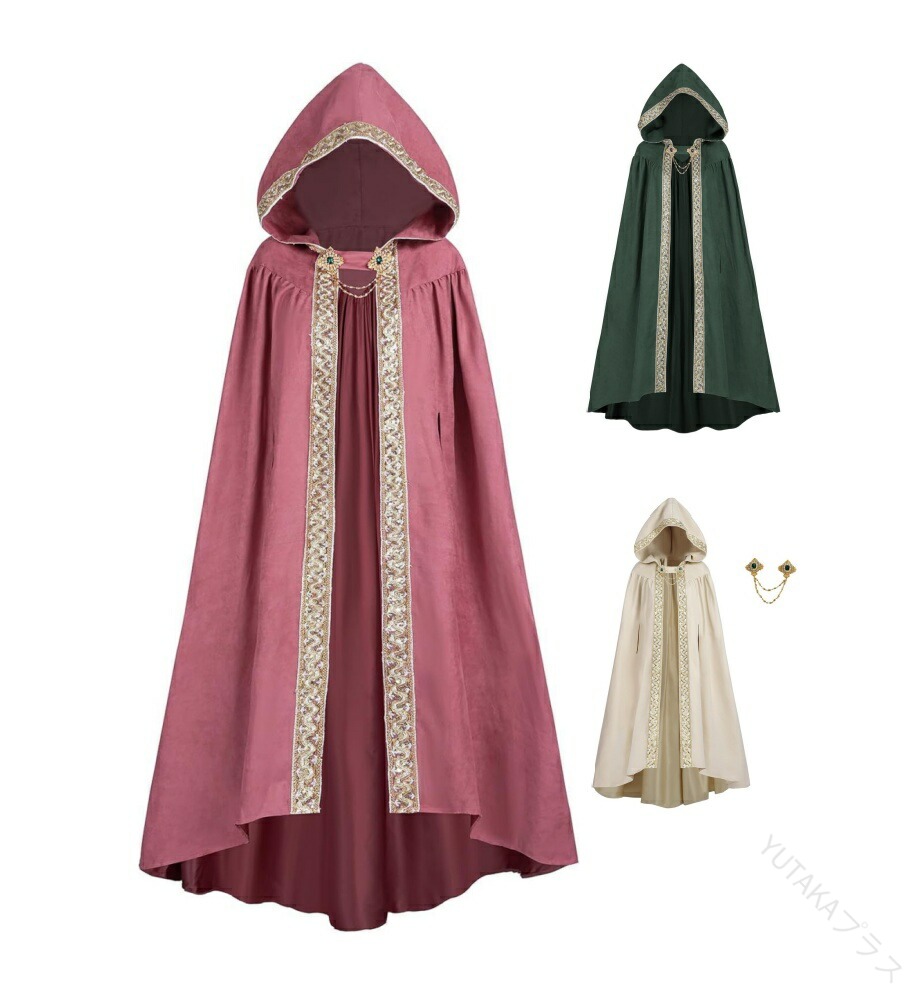 ハロウィン 衣装 レディース 魔術師 貴族 風 仮装 中世 ヨーロッパ 伯爵 夫人 コスチューム ロング フード 付き マント 舞台 演劇 文化祭 コスプレ 用 エレガント 学園祭