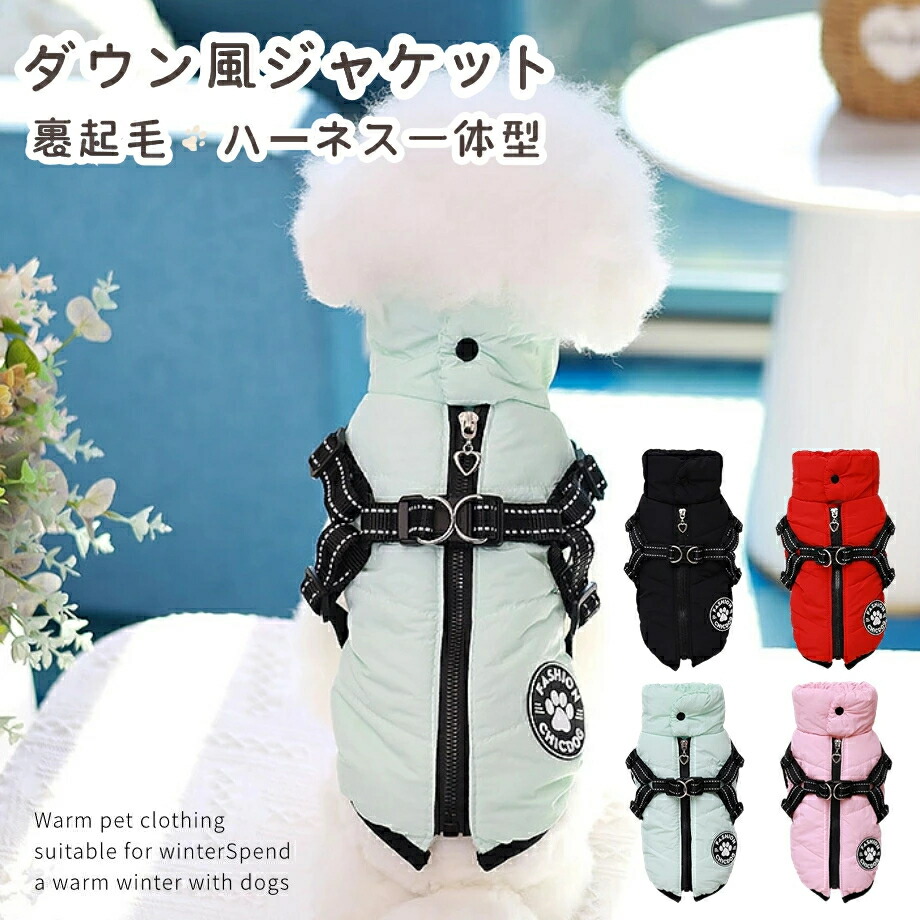 犬 服 ダウン風 ハーネス ジャケット ベスト ドッグウェア 犬の服 犬用洋服 袖なし ハーネス一体型 背中開き ファスナー ペット服 ウェア 洋服 防寒 ボアベスト 猫 裏起毛 あったか 犬服