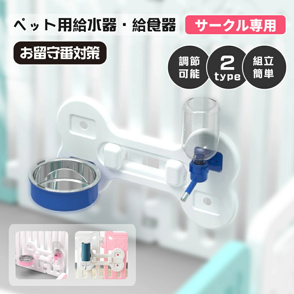 ペットサークル給水器 ペット用給水器+給食器セット ペットぶら下げボウル ペットサークル用 ウォーターボトル 給水ボトル ケージ 固定 吊り下げ式 お留守番対応 大容量 水入れ 猫 水やり 給水機 犬