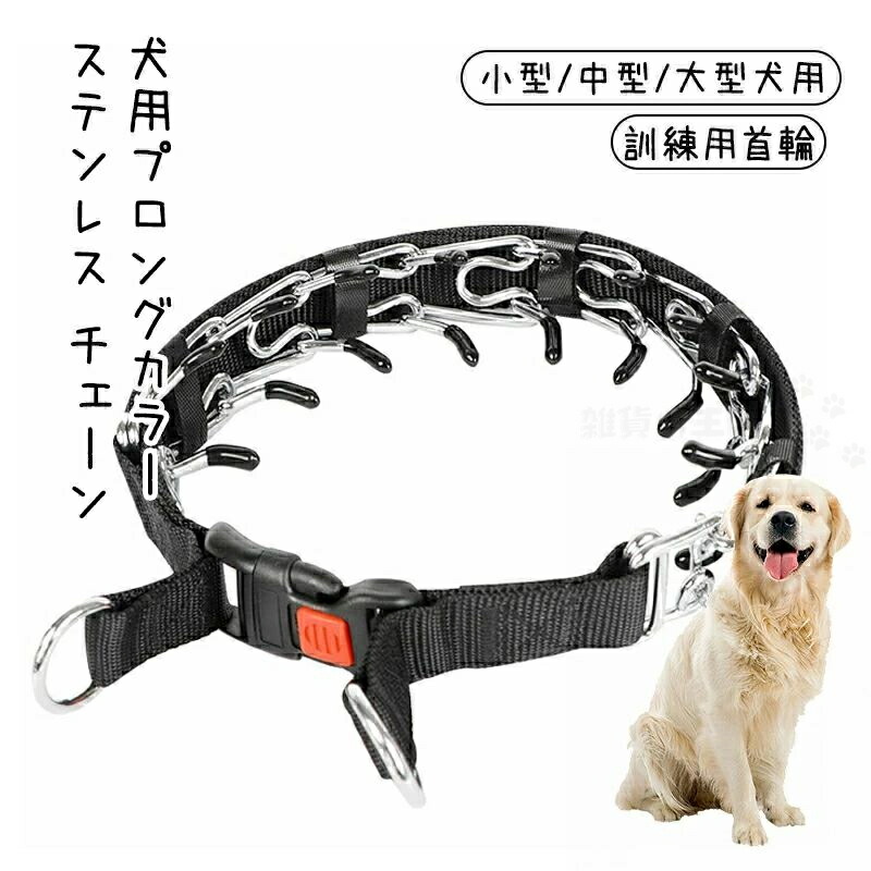 犬 首輪 訓練用 犬用プロングカラー ステンレス チェーン 引っ張り しつけ用 トレーニング 簡単装着 調節可能な犬用トレーニングカラー 犬用品 お散歩グッズ 反射カバー付き犬用スパイクピンチカラー