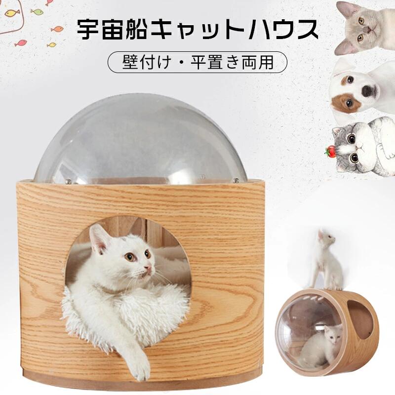 猫用ベッド 宇宙船 透明宇宙船 ウォールナット ハウス 壁付け 天然木 木製 北欧 猫の巣 送料無料